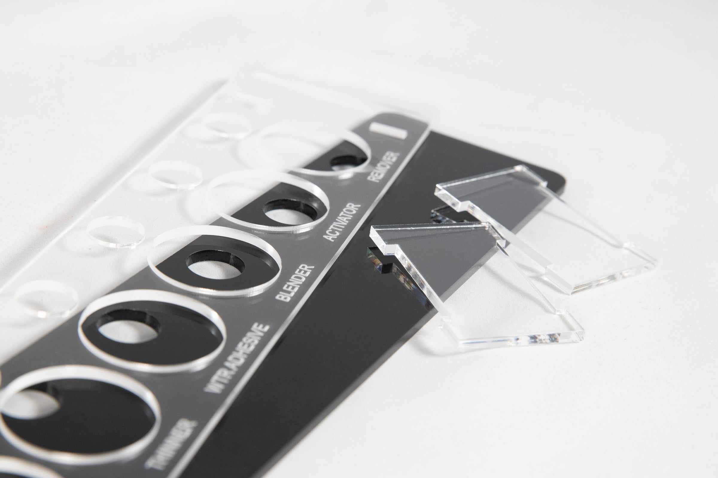 The MUA Tray is an essential tool for prosthetic makeup artists looking to streamline and organise their workspace. Designed with portability in mind, this high-quality acrylic tray offers a sleek setup that can be divided into four sections for easy storage and transport within your kit!